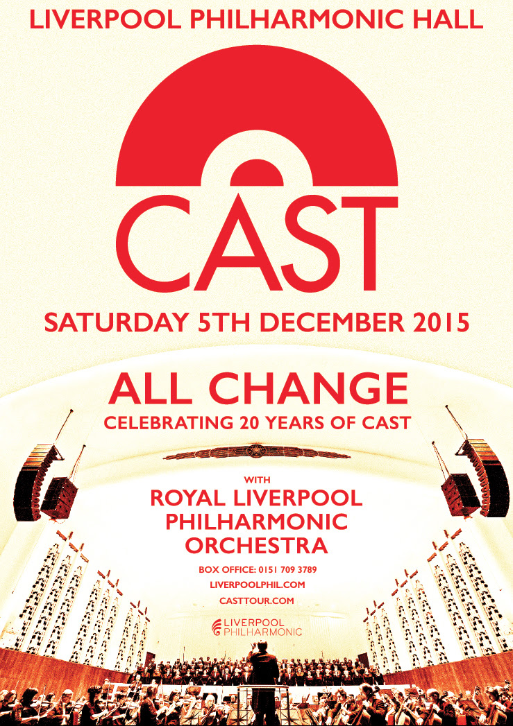To celebrate the 20th anniversary of the classic album ‘All Change’, Liverpool band Cast will unite with the Royal Liverpool Philharmonic Orchestra for a special live performance on Saturday 5th December 2015 at the historic Liverpool Philharmonic Hall.
